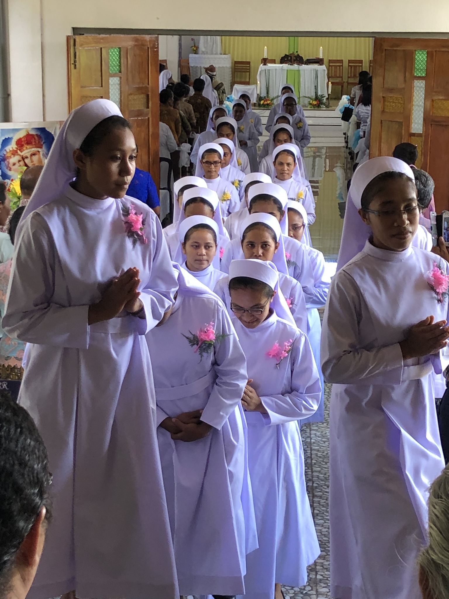 Und welch ein Glück! Sie lud mich zu einer bevorstehenden Nonnen-Investigation ein! Begeistert sagte ich zu. Schon am übernächsten Tag holte sie mich von meiner Unterkunft ab. Wir fuhren gemeinsam zur Kirche und plötzlich war ich mittendrin in einer beeindruckend festlichen Zeremonie, in der eine Vielzahl junger Frauen in die Gemeinschaft der Schwestern aufgenommen wurden. Für sie und ihre Eltern war dies auch ein Tag des Abschiednehmens, weil sie von nun an in der Schwestern-Gemeinschaft leben. Diese garantiert ihnen eine gute Schulausbildung und eine Rundumversorgung. „Deshalb der große Zulauf“, dachte ich bei mir, und „deshalb wohl auch die freudige Erwartung“.